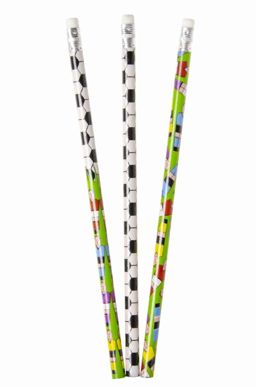 Ces crayons cool sont destinés à tous les amateurs de football ! Avec leurs superbes motifs et leur gomme pratique à l’extrémité, ils sont indispensables pour tous les fans de football. Ils sont disponibles en trois motifs différents et vous recevrez un assortiment varié avec votre commande. Vous avez une préférence ? N’hésitez pas à nous le faire savoir !