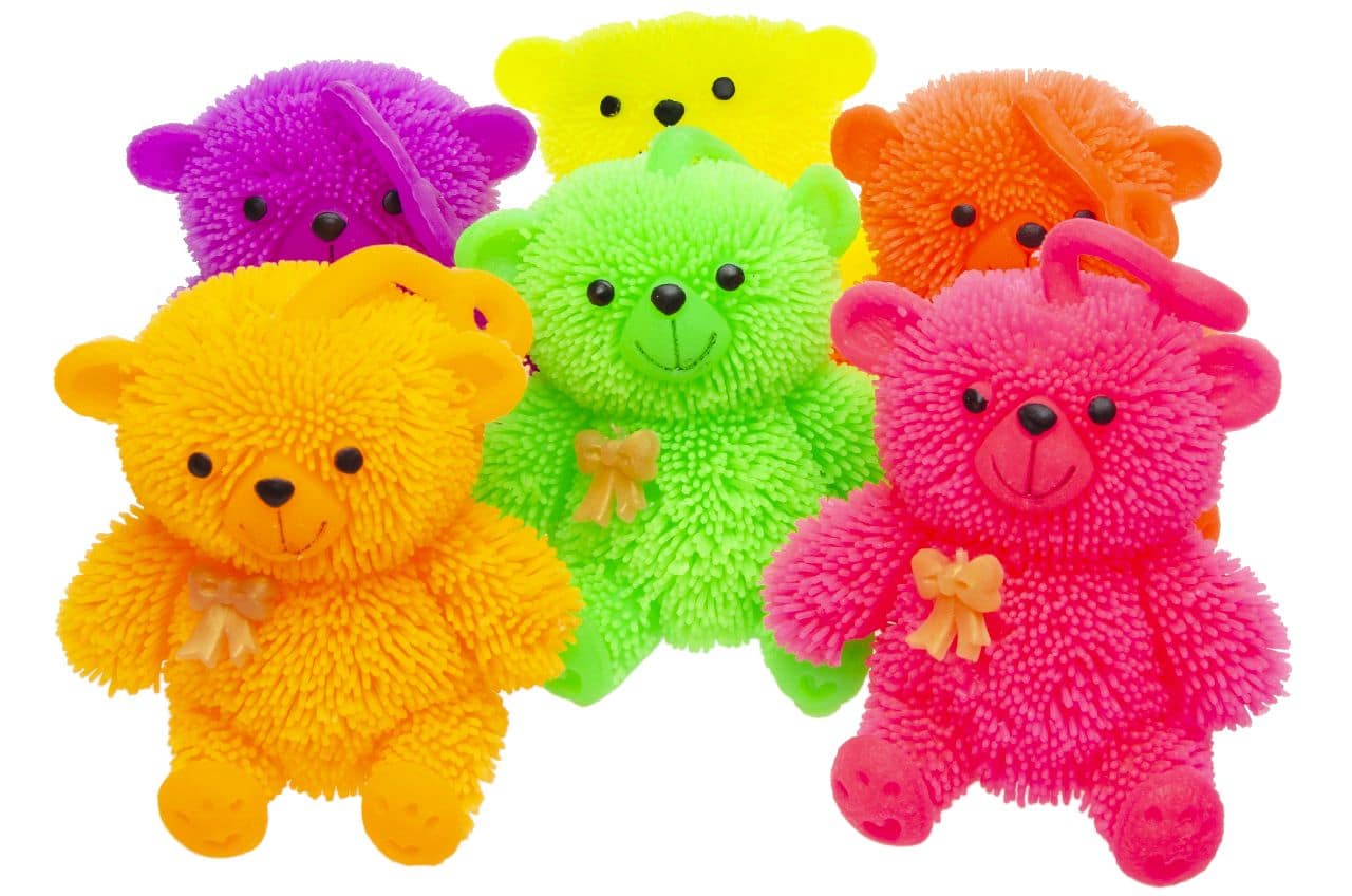 Schattig beertje, gemaakt van zacht materiaal. Perfect als ‘stressbeertje’ om in te knijpen en om mee te spelen.